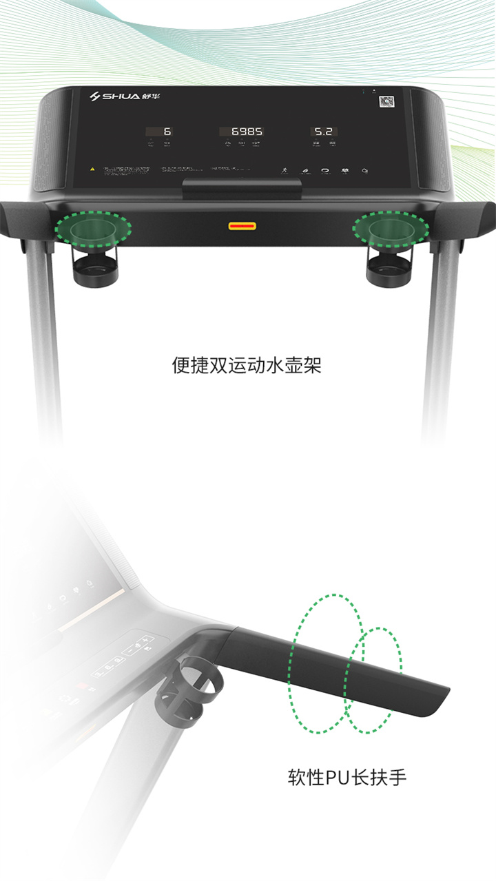 金年会体育推荐健身器材-舒华商用电动跑步机SH-T6500拥有10.1寸IPS高清触摸屏、Z型动感时尚外观设计、70×150mm精钢立柱机身、F级高效静音马达、520mm商用豪华跑带和35mm双层全跑台减震跑板等优势,让您享受科学跑步。