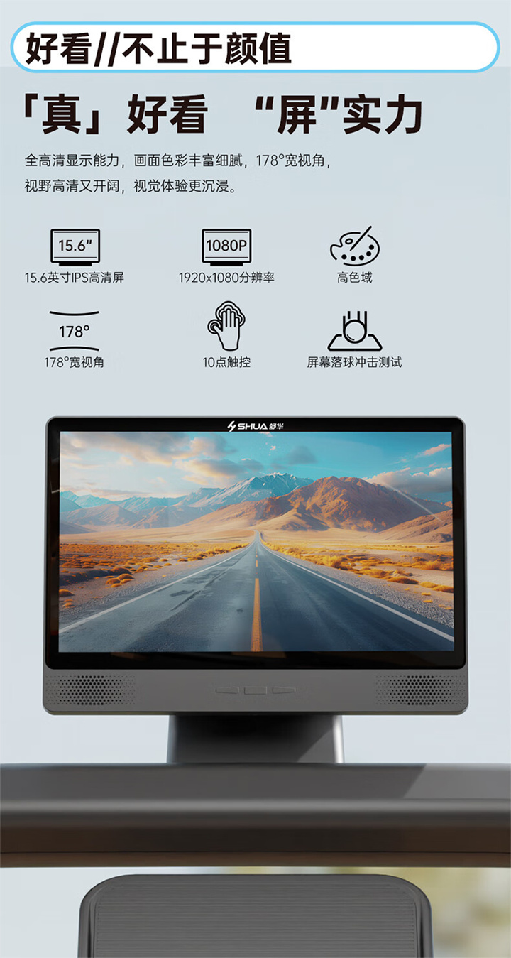 金年会体育推荐健身器材-舒华商用电动跑步机SH-T6500拥有10.1寸IPS高清触摸屏、Z型动感时尚外观设计、70×150mm精钢立柱机身、F级高效静音马达、520mm商用豪华跑带和35mm双层全跑台减震跑板等优势,让您享受科学跑步。